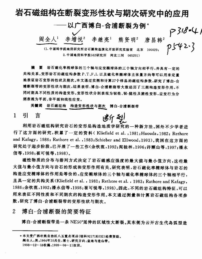 岩石磁组构在断裂变形性状与期次研究中的应用—以广西博白—合浦