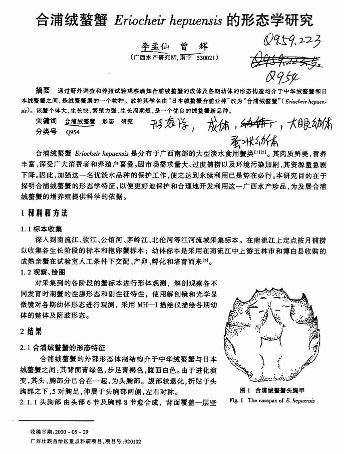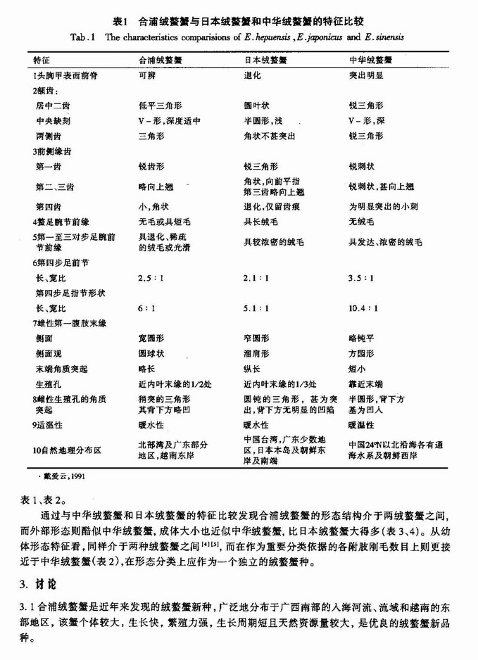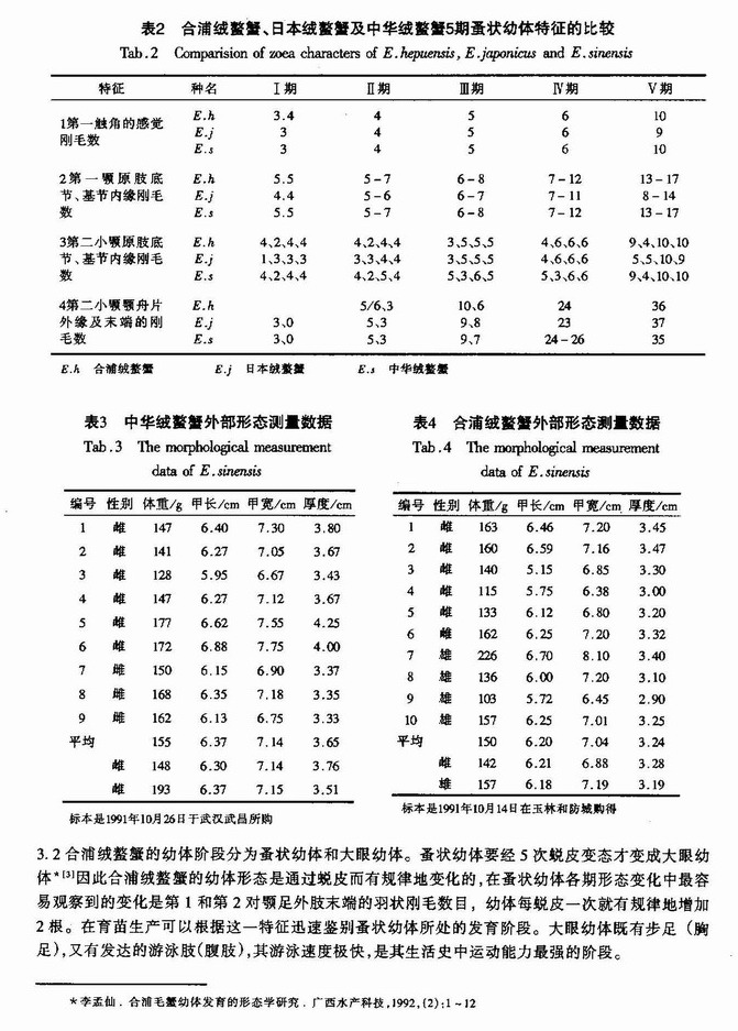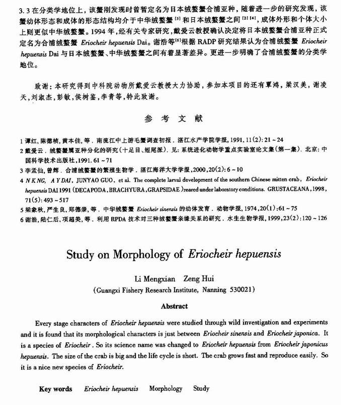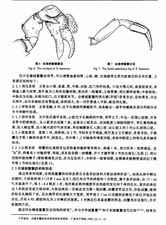 合浦绒螯蟹Eriocheir hepuensis的形态学研究