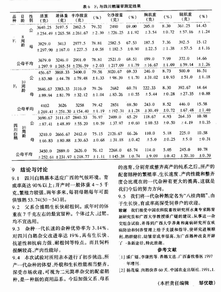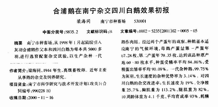 合浦鹅在南宁杂交四川白鹅效果初报