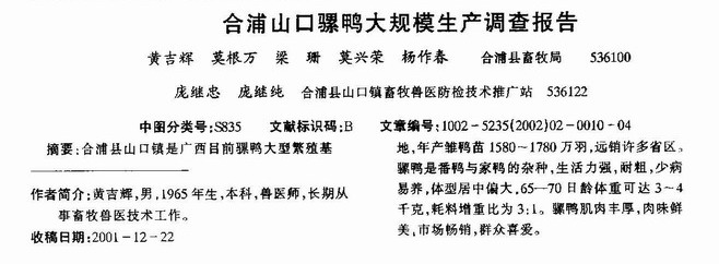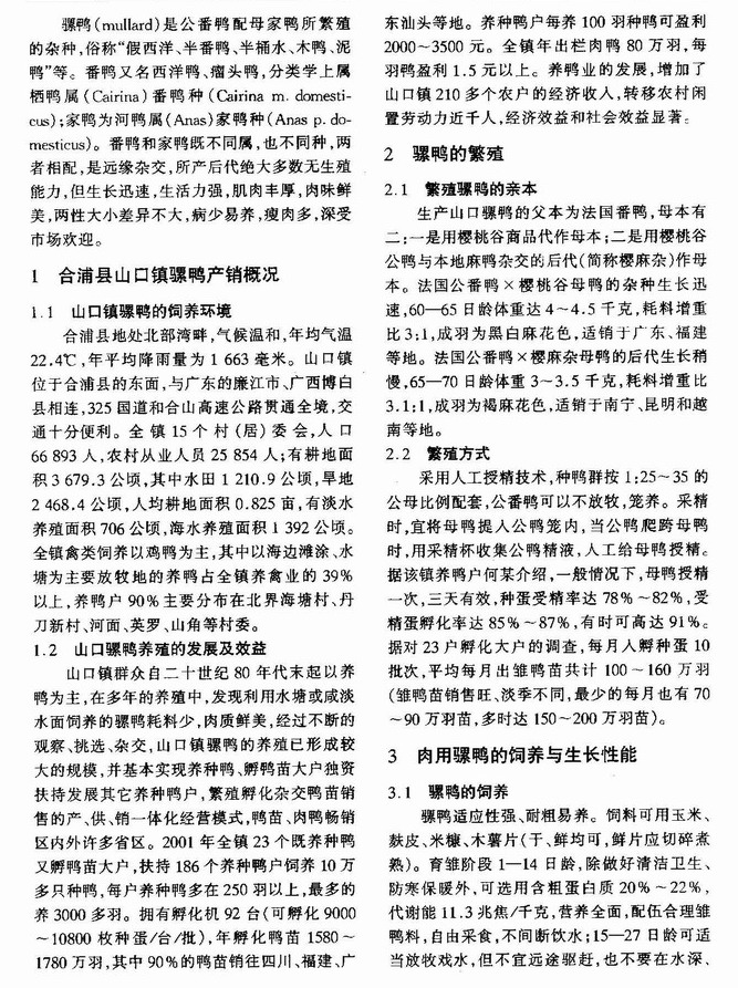 合浦山口骡鸭大规律生产调查报告