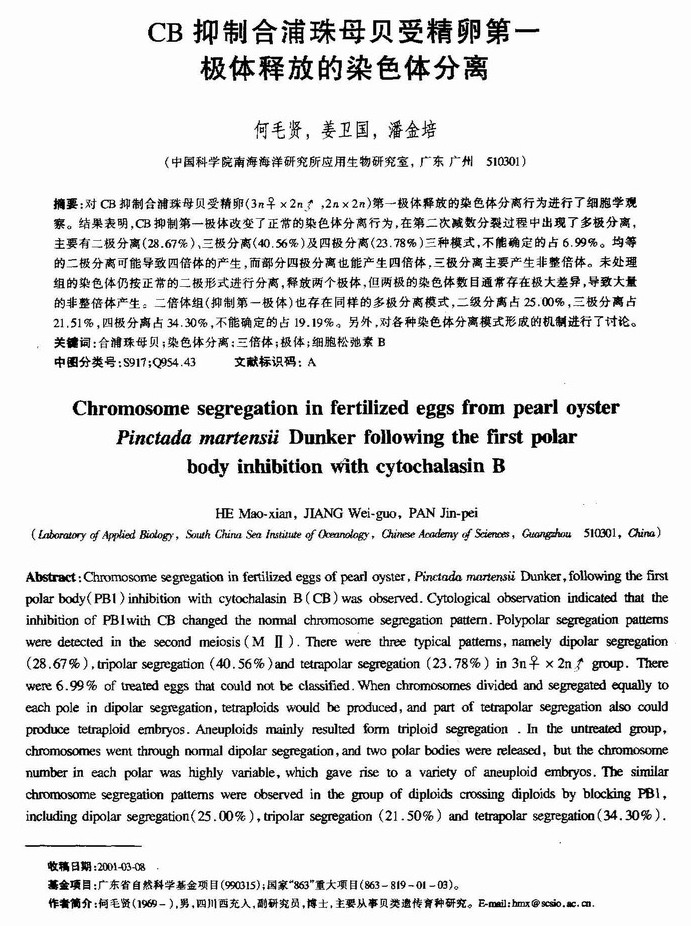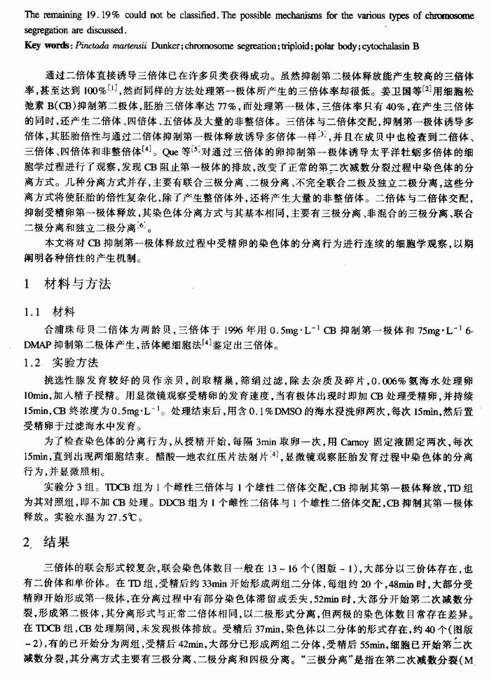 CB抑制合浦珠母贝受精卵第一极体释放的染色体分离