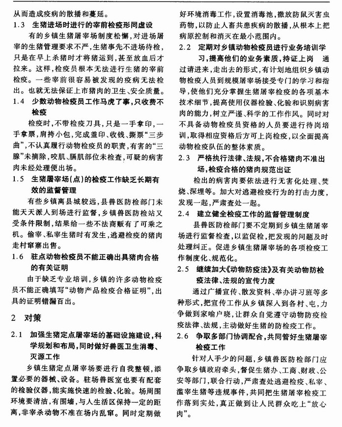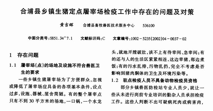 合浦县乡镇生猪定点屠宰场检疫工作中存在的问题及对策