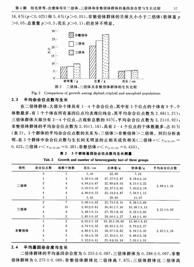 合浦珠母贝二倍体、三倍体和非整倍体群体的基因杂合度与生长比较