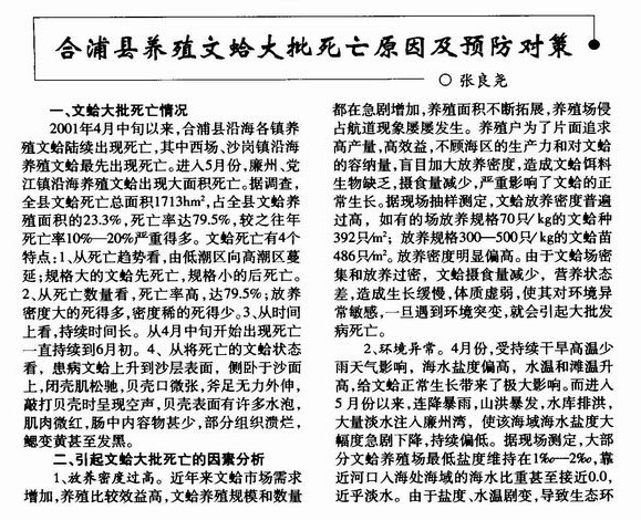 合浦县养殖文蛤大批死亡原因及预防对策