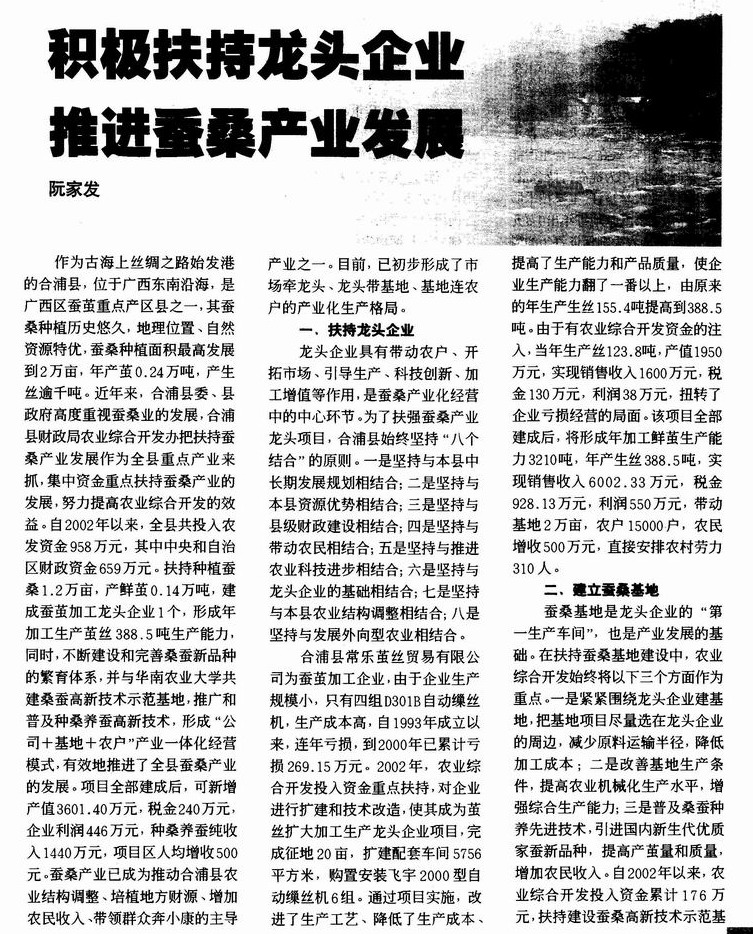 积极扶持龙头企业推进蚕桑产业发展