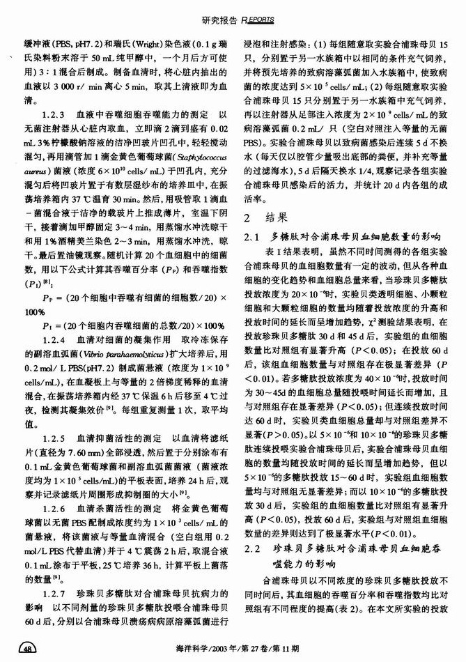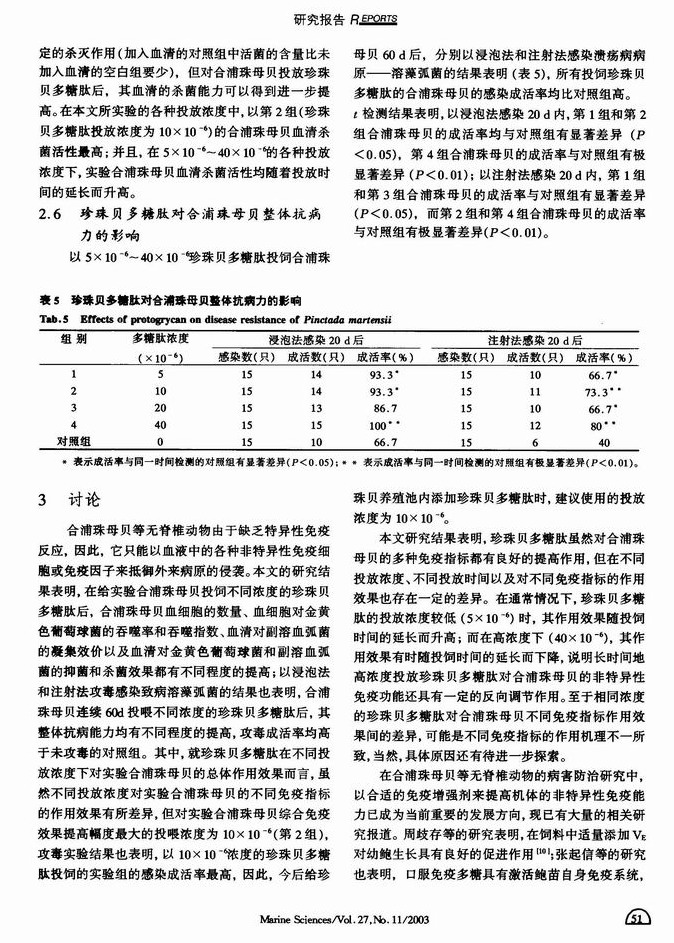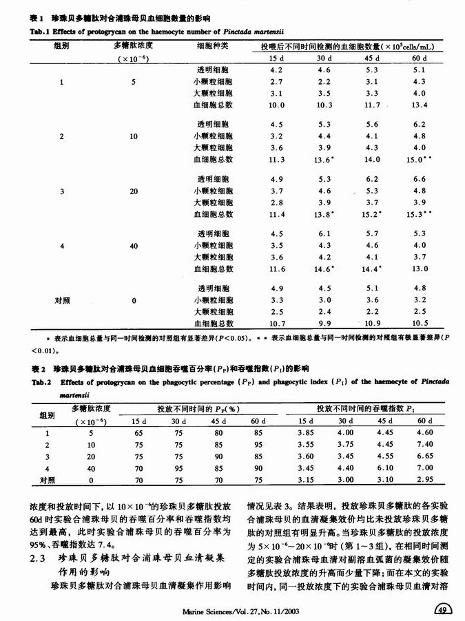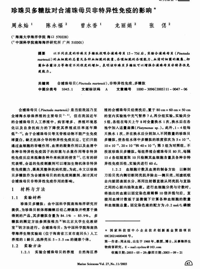 珍珠贝多糖肽对合浦珠母贝非特异性免疫的影响