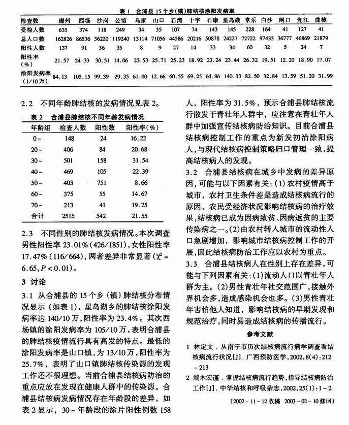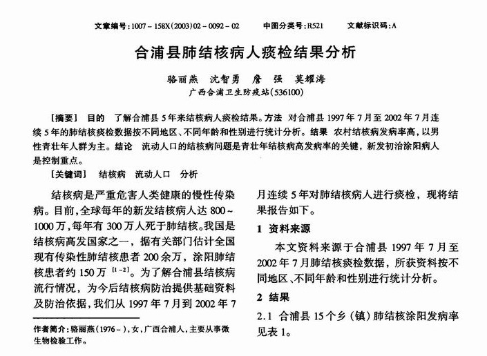 合浦县肺结核病人痰检结果分析