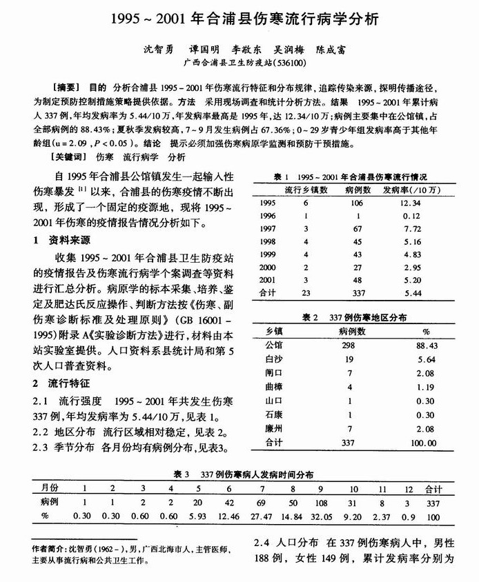1995~2001年合浦县伤寒流行病学分析
