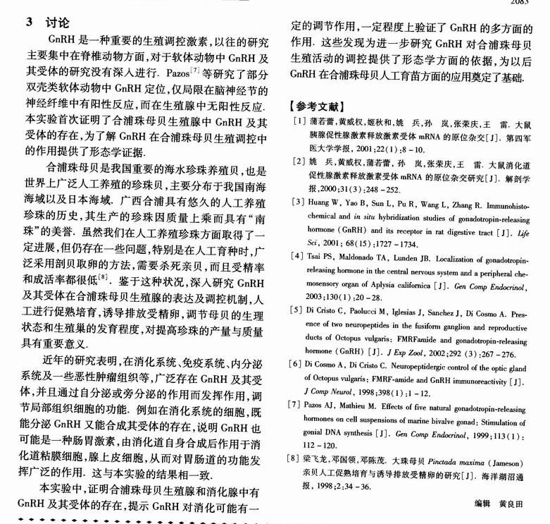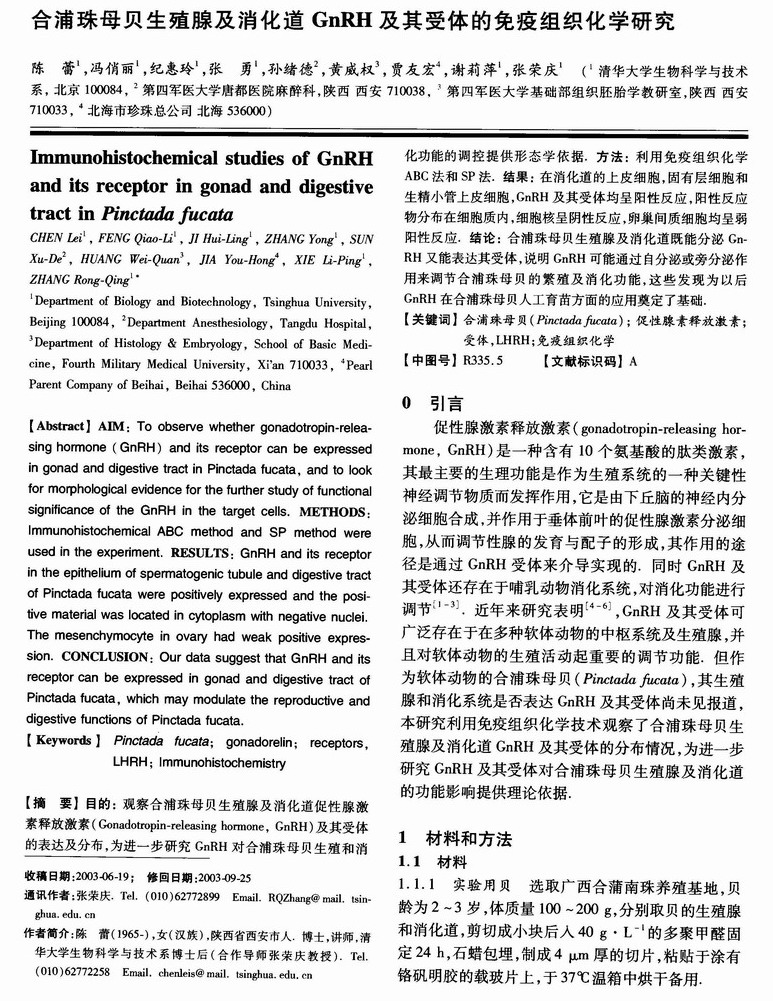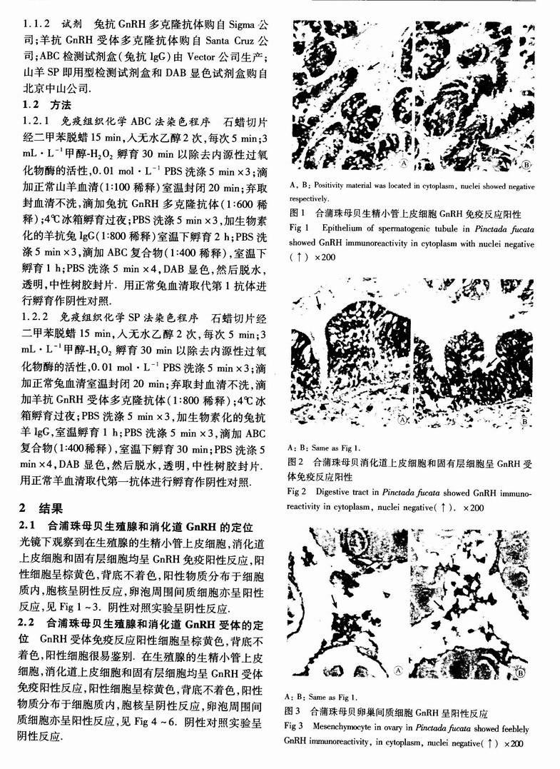 合浦珠母贝生殖腺及消化道GnRH及其受体的免疫组织化学研究