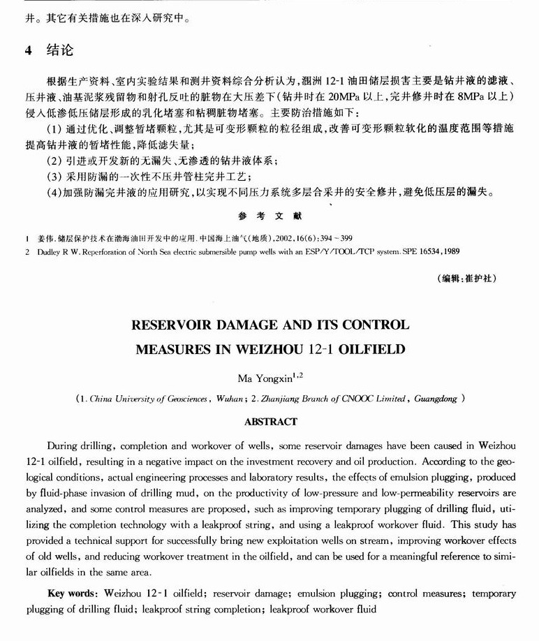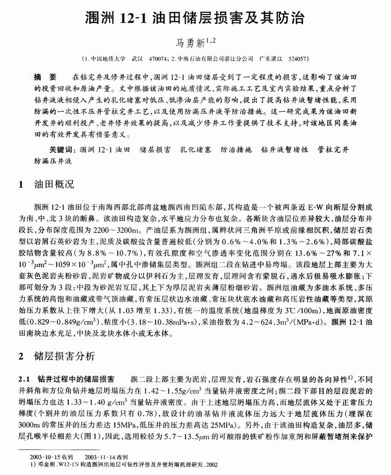 涠洲12—1油田储层损害及其防治