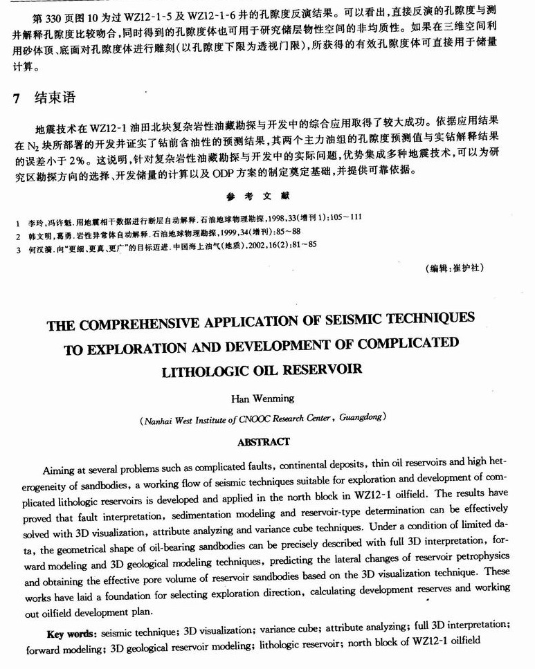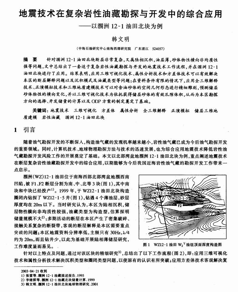 地震技术在复杂岩性油藏勘探与开发中的综合应用——以涠洲12-1油田北块为例