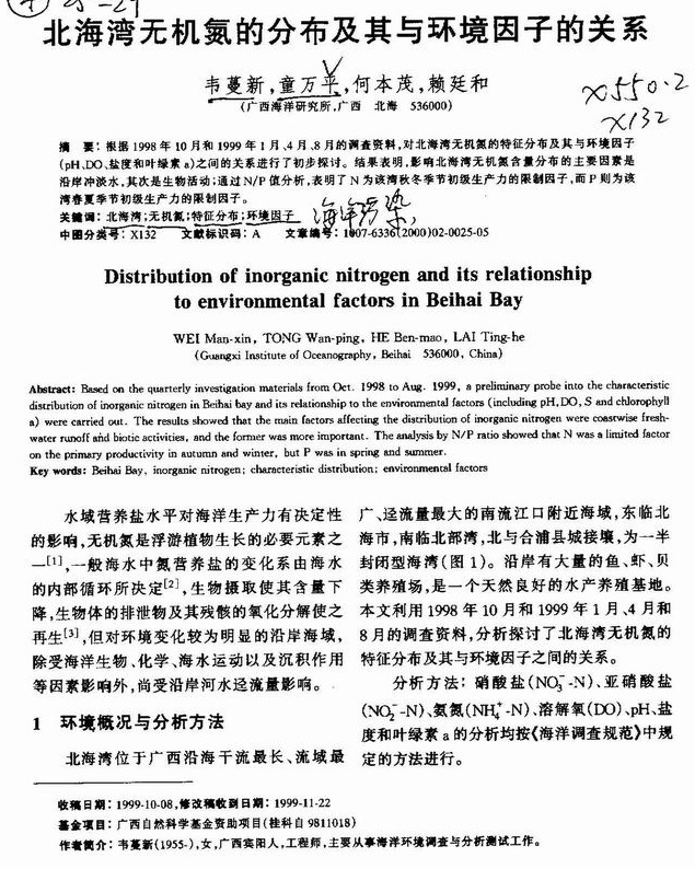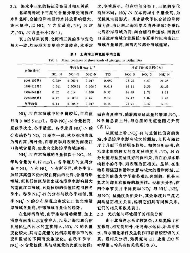 北海湾无机氮的分布及其与环境因子的关系