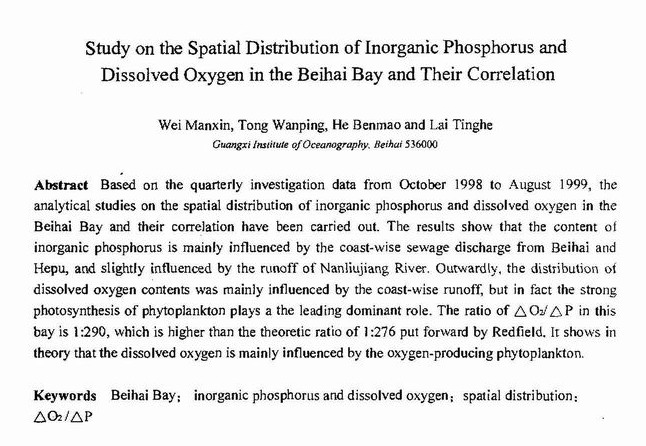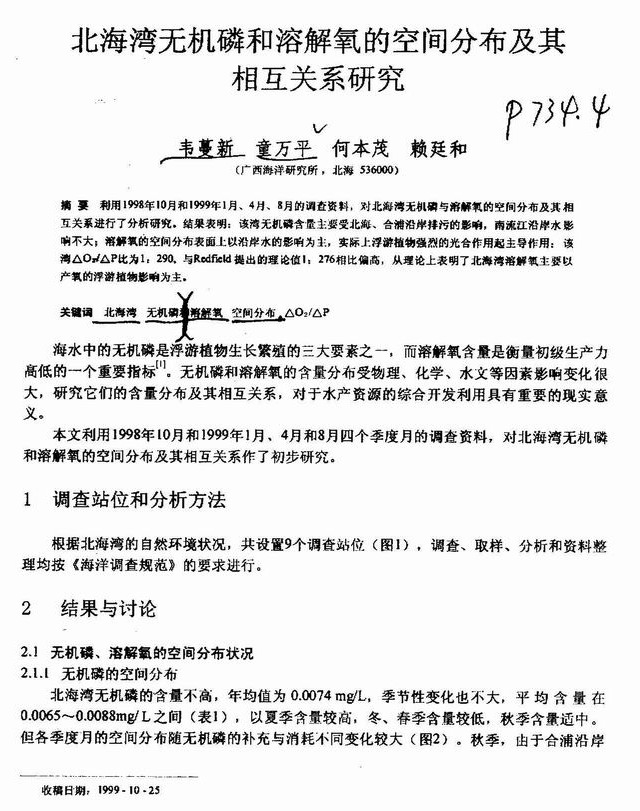 北海湾无机磷和溶解氧的空间分布及其相互关系研究