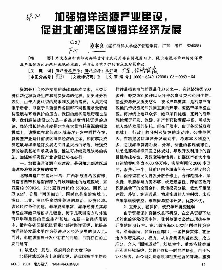 加强海洋资源产业建设,促进北部湾区域海洋经济发展