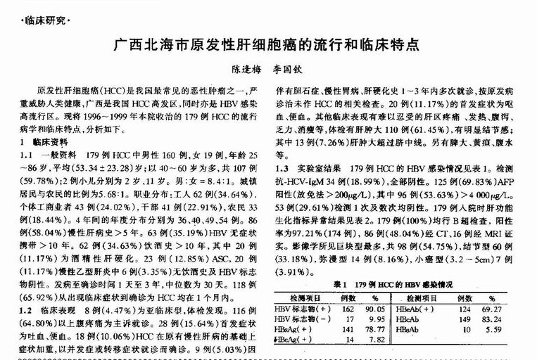 广西北海市原发性肝细胞癌的流行和临床特点