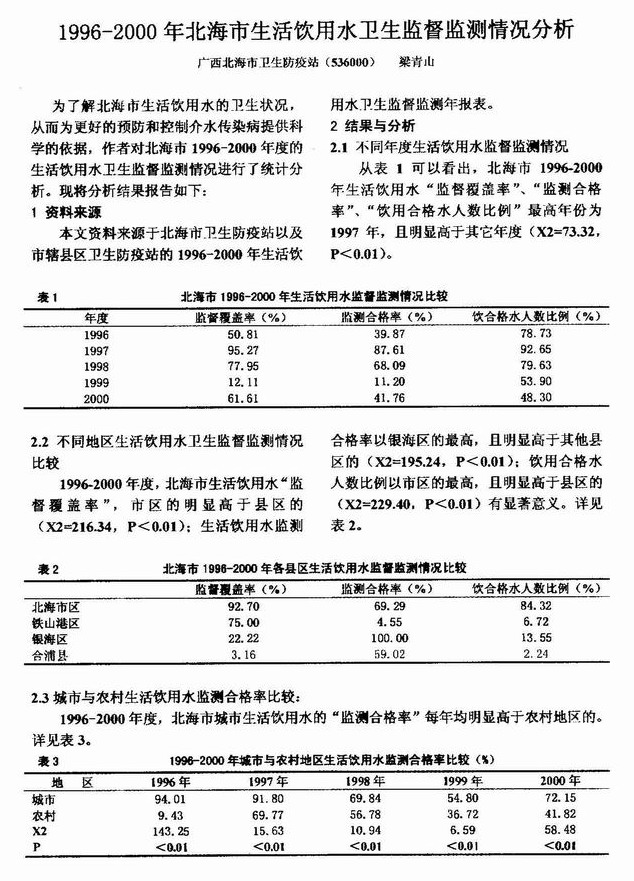 1996—2000年北海市生活饮用水卫生监督监测情况分析