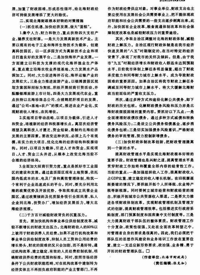 当前北海财政工作面临的困难与出路