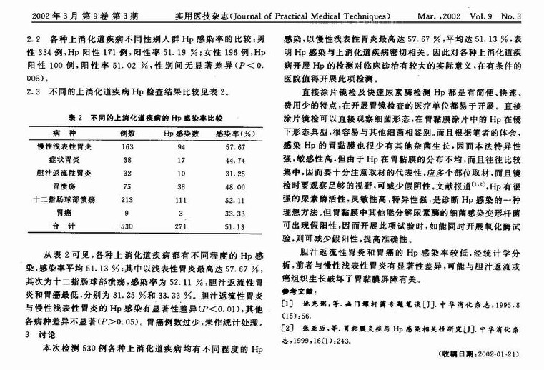 北海地区530例上消化道疾病幽门螺杆菌检测结果分析