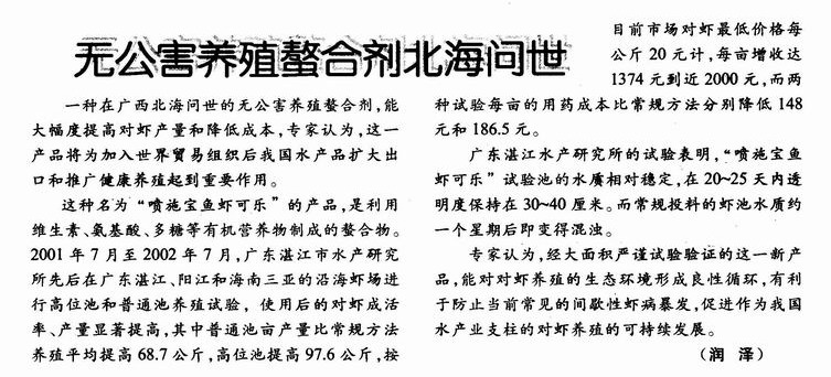 无公害养殖螯合剂北海问世