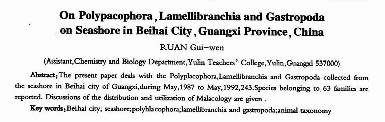 广西北海市海滨多板纲、双壳纲和腹足纲种类的初步研究