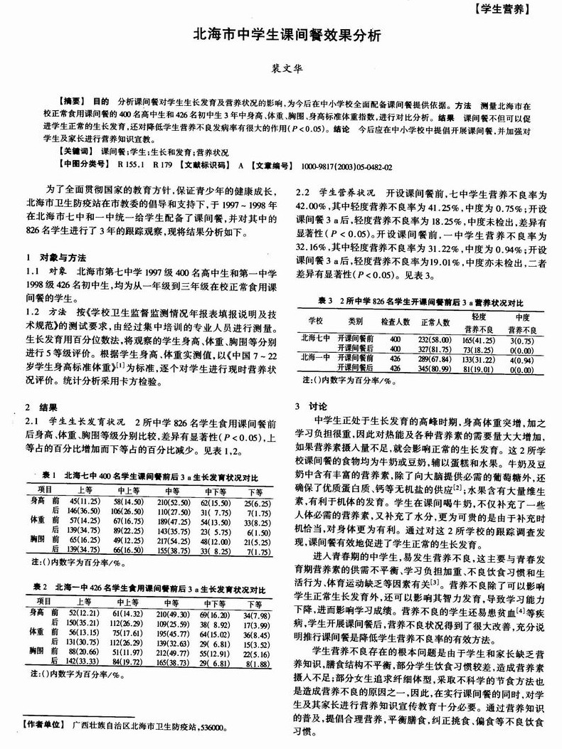 北海市中学生课间餐效果分析