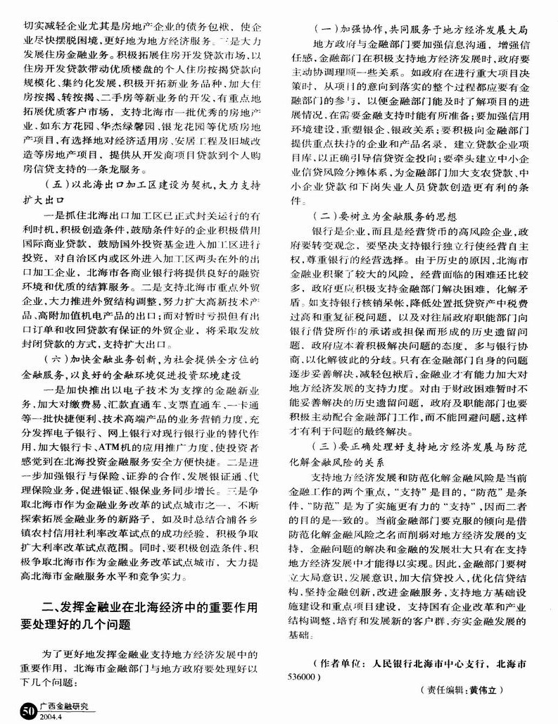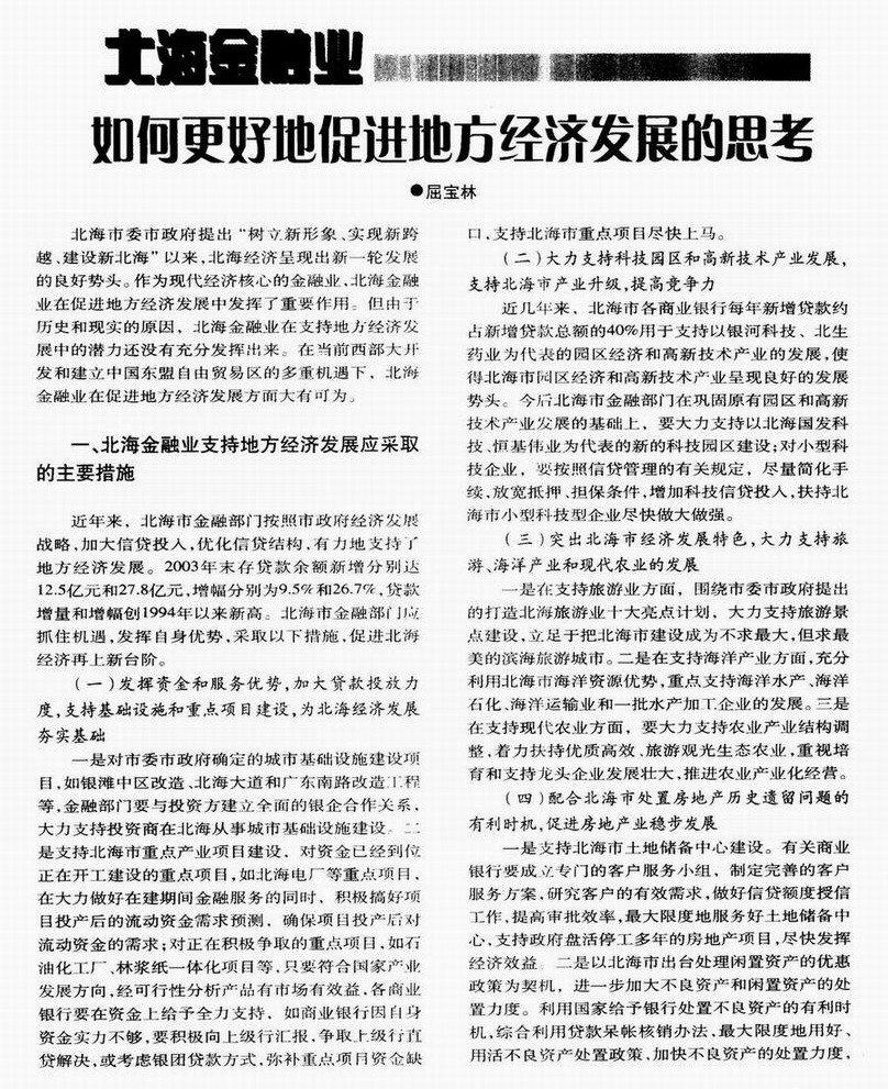北海金融业如何更好地促进地方经济发展的思考