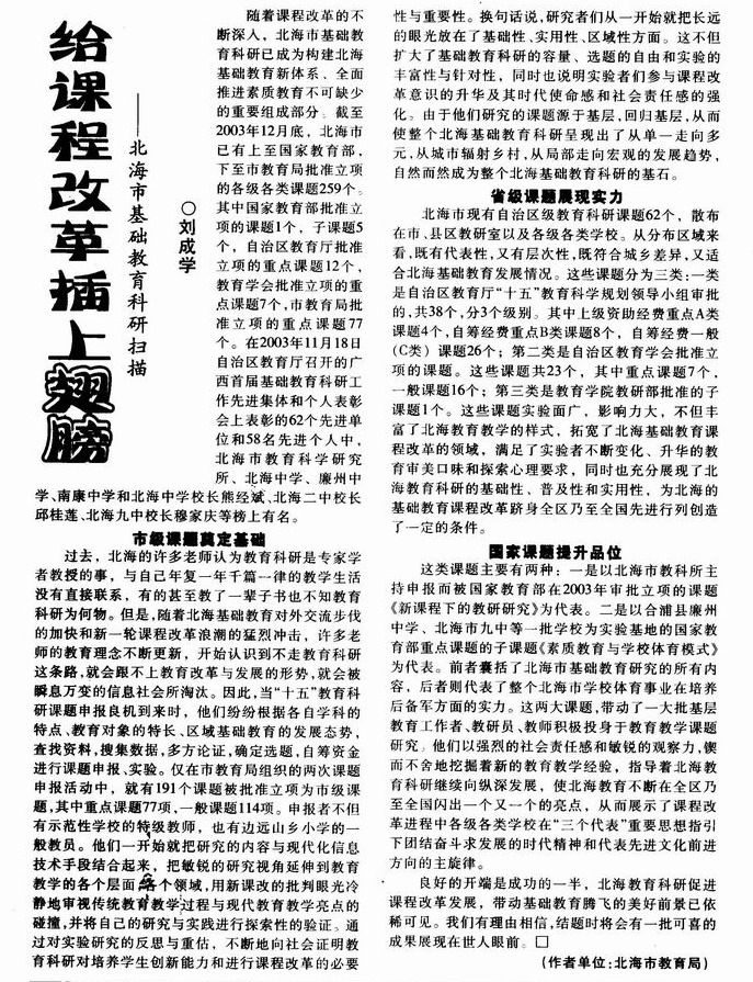 给课程改革插上翅膀——北海市基础教育科研扫描
