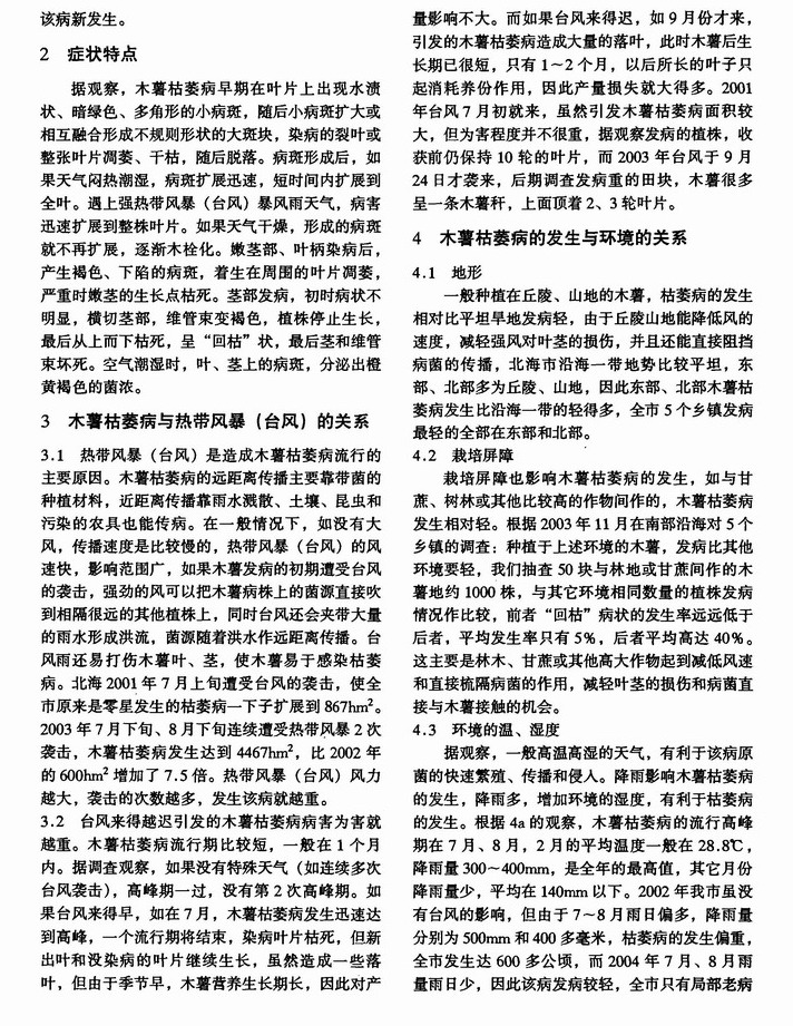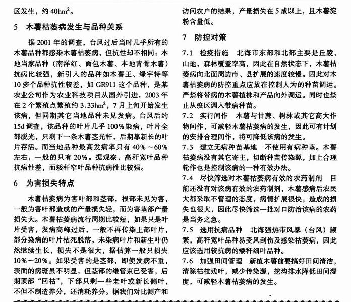 北海市木薯细菌性枯萎病的发生为害特点及防治对策