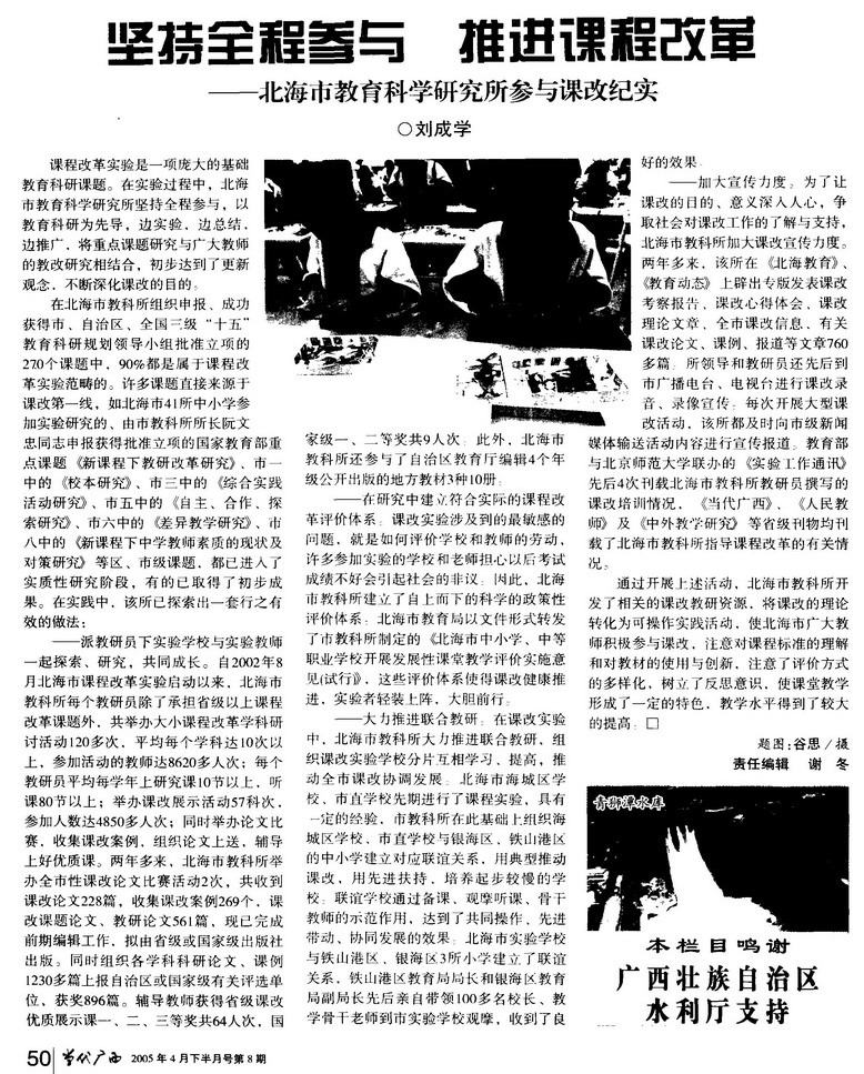 坚持全程参与 推进课程改革——北海市教育科学研究所参与课改纪实