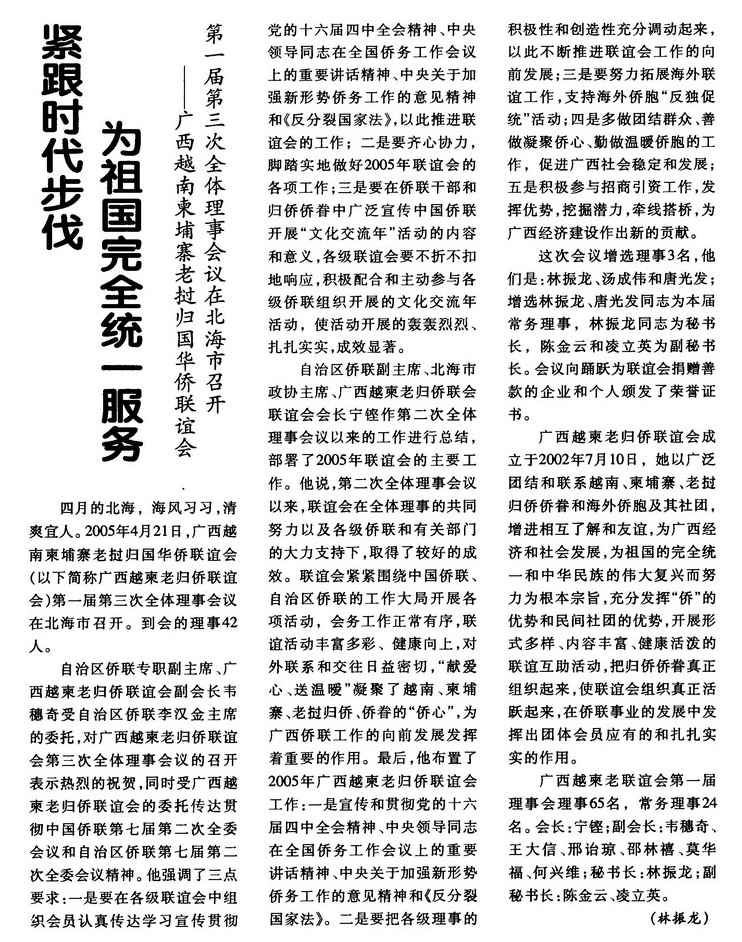 国务院侨办赵阳副主任在全区侨务工作会议上的讲话——广西越南柬埔寨老挝归国华侨联谊会第一届第三次全体理事会议在北海市召开