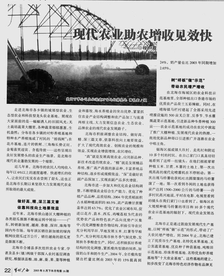 现代农业助农增收见效快