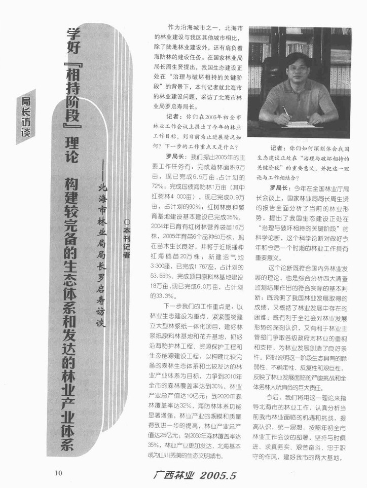 学好“相持阶段”理论 构建较完备的生态体系和发达的林业产业体系--北海市林业局局长罗启寿访谈