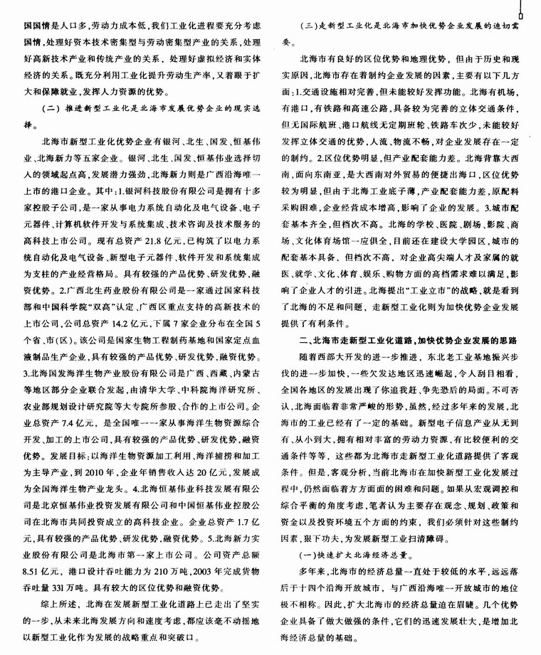 走新型工业化道路 加快北海市优势企业发展的思路和对策