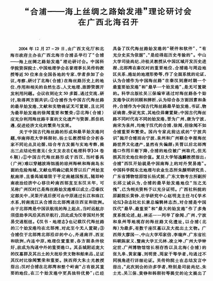 “合浦——海上丝绸之路始发港”理论研讨会在广西北海召开