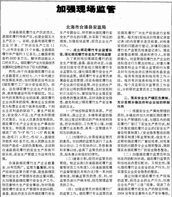 加强现场监管