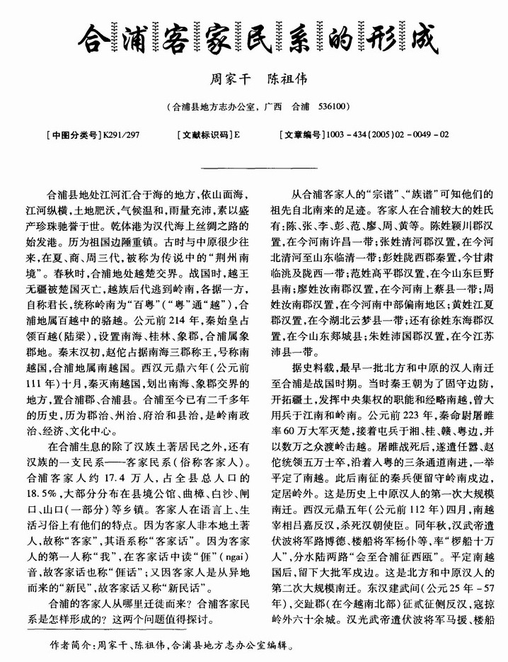 合浦客家民系的形成