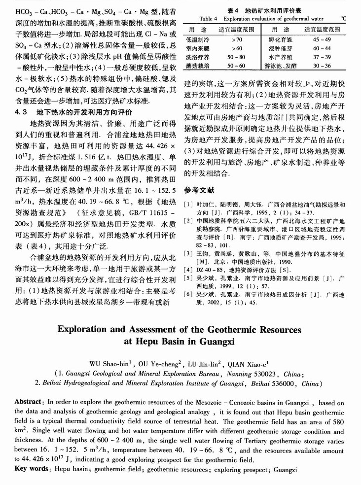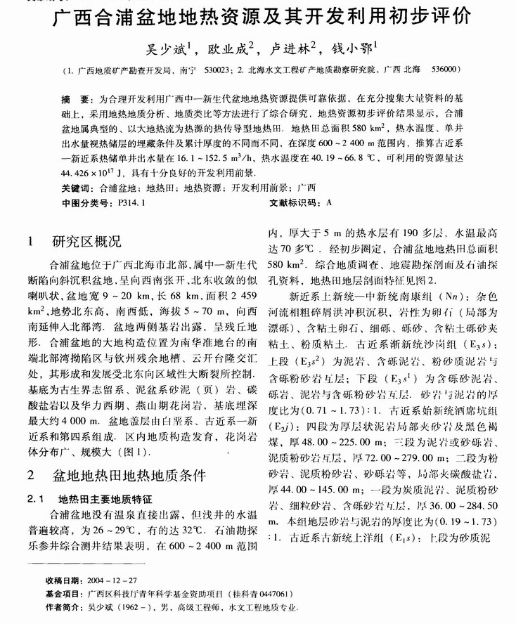 广西合浦盆地地热资源及其开发利用初步评价