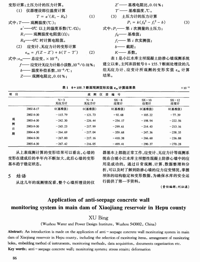 砼防渗墙观测系统在合浦小江水库主坝中的应用