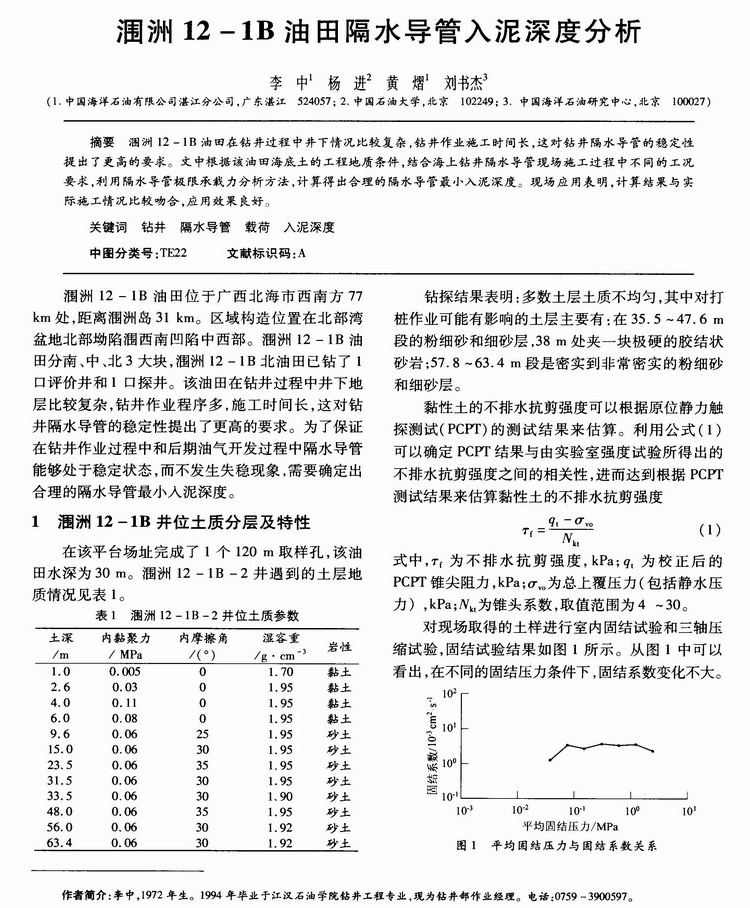 涠洲12-1B油田隔水导管入泥深度分析