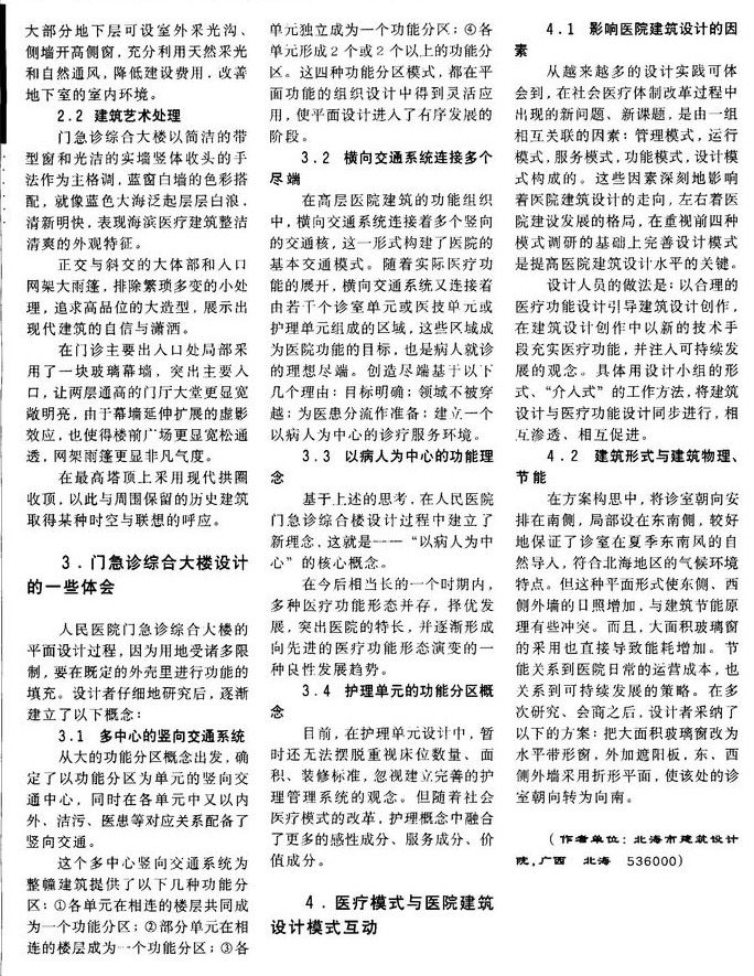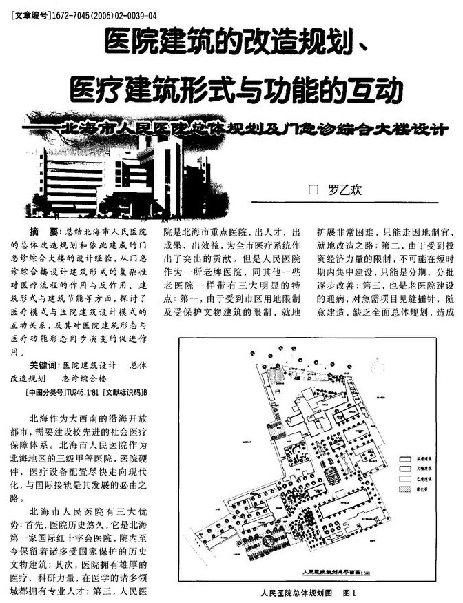 医院建筑的改造规划、医疗建筑形式与功能的互动——北海市人民医院总体规划及门急诊综合大楼设计