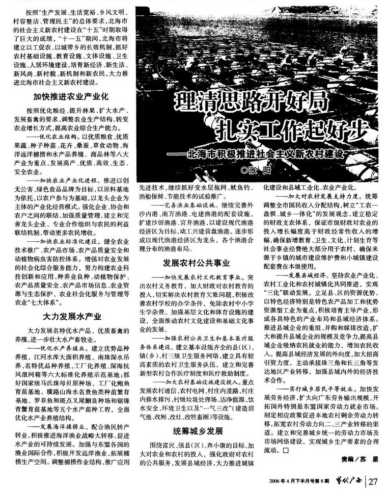 理清思路开好局 扎实工作起好步——北海市积极推进社会主义新农村建设