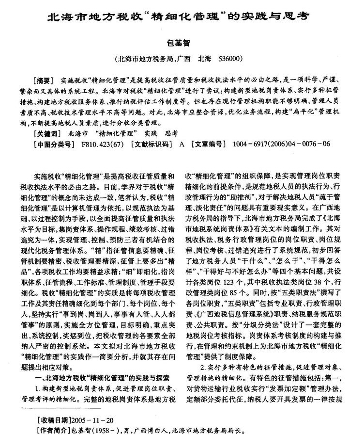 北海市地方税收“精细化管理”的实践与思考