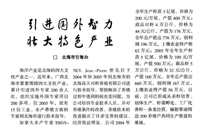 引进国外智力 壮大特色产业