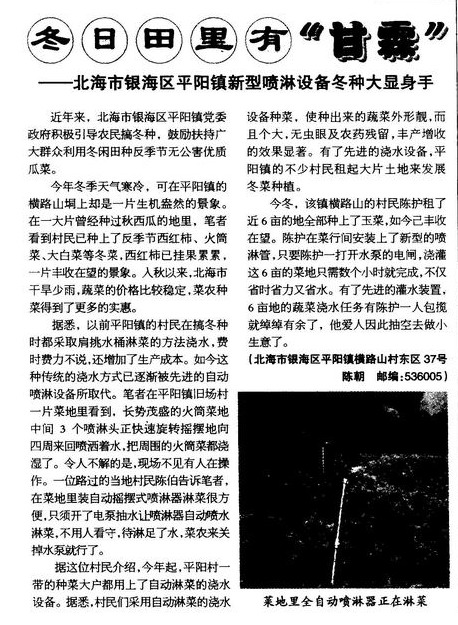 冬日田里有“甘霖”——北海市银海区平阳镇新型喷淋设备冬种大显身手