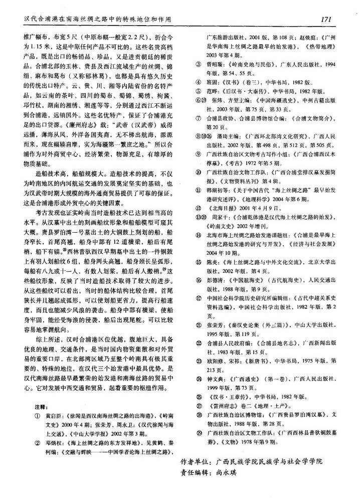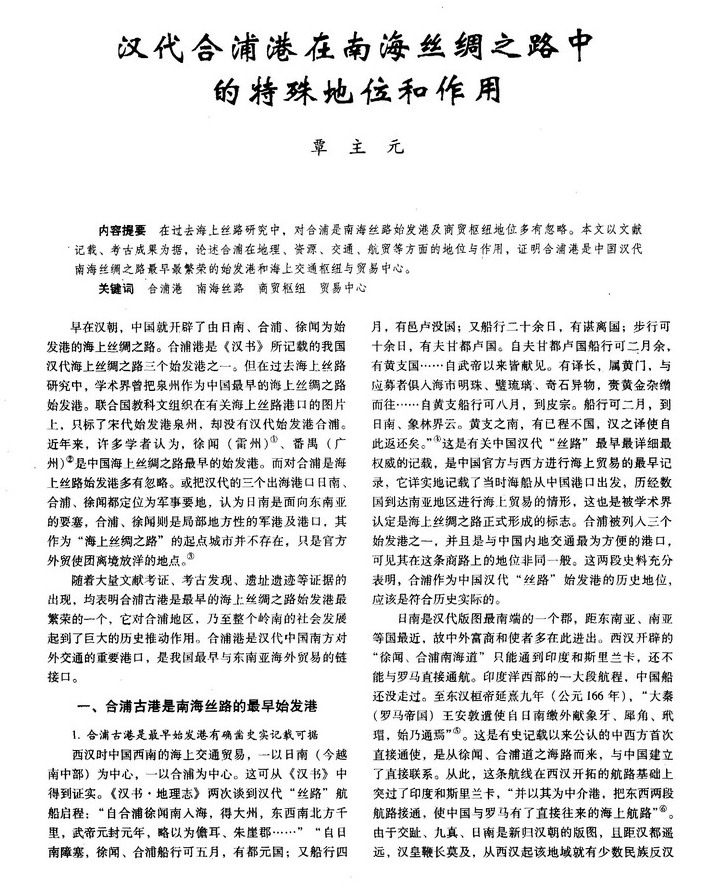 汉代合浦港在南海丝绸之路中的特殊地位和作用