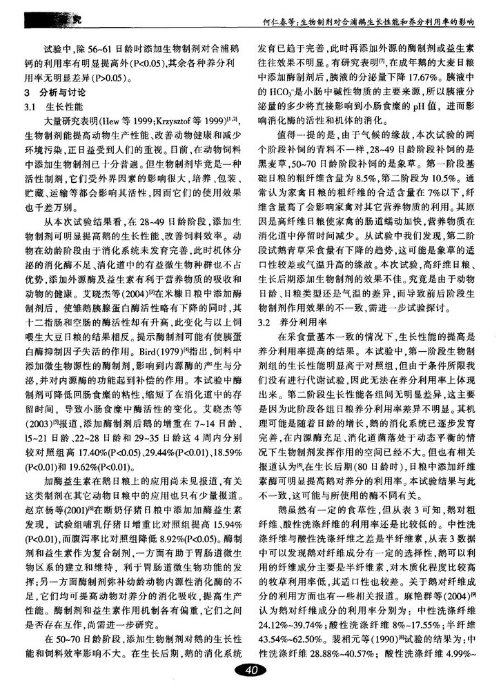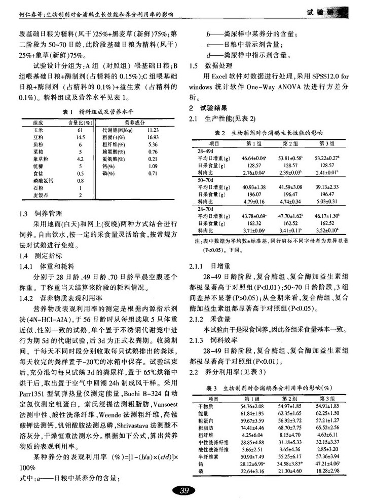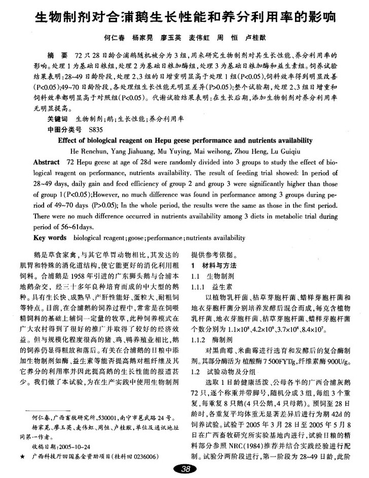 生物制剂对合浦鹅生长性能和养分利用率的影响