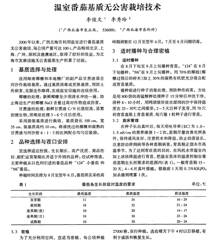 温室番茄基质无公害栽培技术