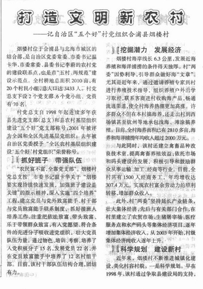 打造文明新农村——记自治区“五个好”村党组织合浦县烟楼村