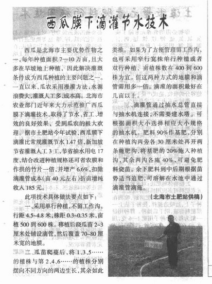 西瓜膜下滴灌节水技术
