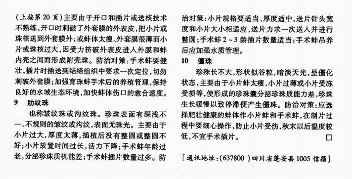 次品珍珠的成因及防治对策